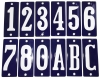 B x H = 4 x 10 cm. Kleur: Kobalt blauw met witte cijfers.