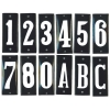 B x H = 4 x 10 cm. Kleur: Zwart met witte cijfers.